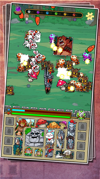 除此之外,还可以在探索模式中获取更加丰富的资源来加强英雄的能力,让你的英雄队伍在无尽模式中击败更多的敌人。在一次大扫除中,你重新打开了尘封的游戏盒子,决心重温儿时的幻想乐趣。你能否重建纸片游戏之国,扫清受污染的游戏卡片,寻回失落的纸片英雄?《纸片防御》的世界等待你的降临!快来一起组建自己的英雄队伍,搭配丰富的技能组合。竖屏单侧塔防游戏,玩家在游戏中搜集各种不同类型的英雄,组合3个任意英雄,创造效果丰富的技能来防御强大的敌人,保卫家园。在屋角的书柜里,曾经存在着一个快乐的纸片游戏王国。在它刚刚被带回家里的时候,生活是那么的色彩鲜艳,居民是如此身材挺拔,主人每天都沉浸在国度里,过着快乐的二次元生活。然而随着时间的推移,纸片游戏王国被尘封在书柜底层,快乐也离他们远去,尘埃和黑暗逐渐侵蚀了美好的国度。一群被湿气和灰尘污染的游戏卡片开始攻击他人,试图将整个王国拖入毁灭的深渊。